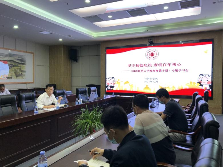 10月28日下午,必赢国际437官网在科技楼1607召开教职工大会暨师德师风专题学习会。会议由学院党委书记祁超同志主持 ,院长林耀进和副院长周豫苹、黄慧分别就有关议题进行宣讲、部署和说明,全院教职员工参加会议。