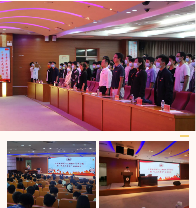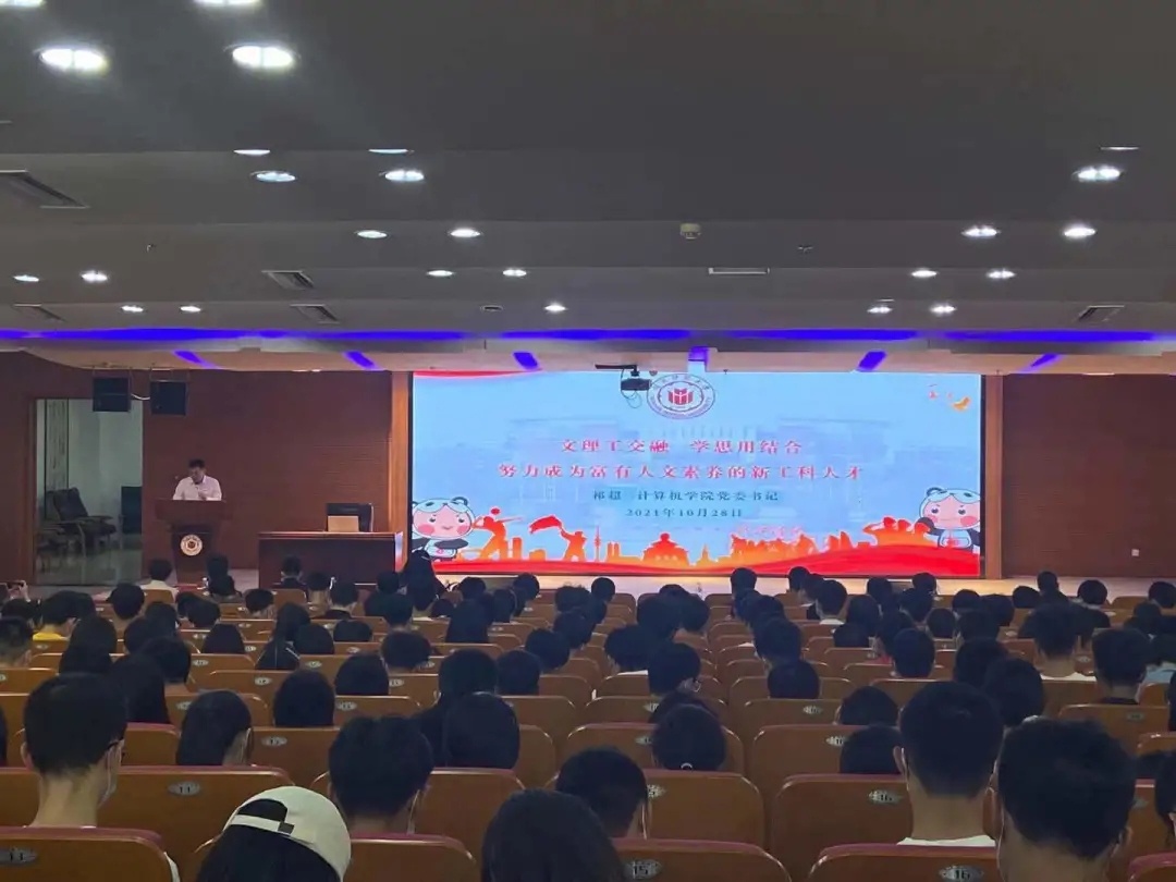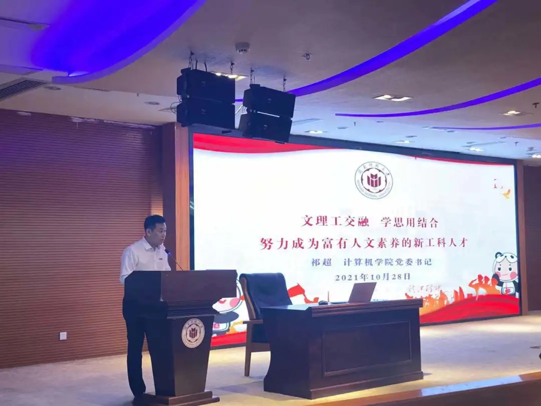 祁超代表学院全体师生对2021级新同学表示热烈欢迎和诚挚问候。他指出,大学时期是同学们人生成长发展极其重要的拔节育穗期、本领准备期。成长为德智体美劳全面发展的时代新人,不仅要学习深厚的专业技术知识,还要积淀良好的人文素养。基于此,学院决定今年下半年开始面向全院学生开设“人文大课堂”。希望同学们通过计算机类专业课程训练基础上的人文大课堂熏陶,多学习、多思考、多实践,进一步提升人文素养、人文思维和人文实践能力,努力成长为“文理工交融、学思用贯通,富有人文素养的新工科人才”。祁超强调,没有“躺平”便能“躺赢”的青春!希望同学们牢记习近平总书记对青年的殷切希望,厚植家国情怀、学会知行合一、追求通专并进、坚持勤学好问,在品格塑造、能力培养、素质提升的有机融合中,争做可堪大任的时代新人,以青春奋斗致敬伟大事业、伟大时代和伟大国家!