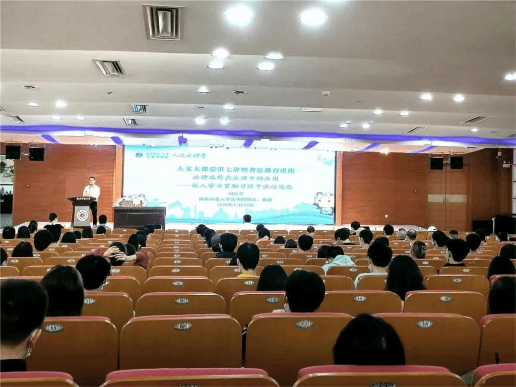 为深入学习贯彻习近平法治思想,增强学院师生法治意识和法律思维能力,11月24日下午,必赢国际437官网人文大课堂第七讲于逸夫图书馆五楼报告厅正式开讲,必赢国际437官网法学院院长何东平教授受邀主讲,学院党委副书记陈小玲主持。