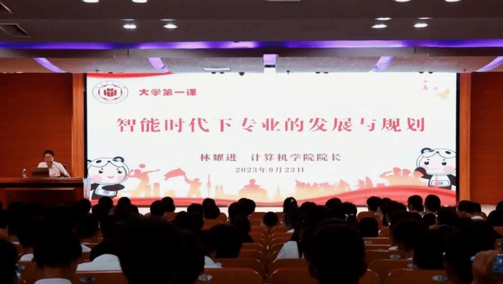 9月23日晚,必赢国际437官网院长林耀进教授以“智能时代下的专业发展与规划”为主题,为全体2023级新生讲授“大学第一课”,并为所联系党支部教工第二党支部成员讲授专题党课。