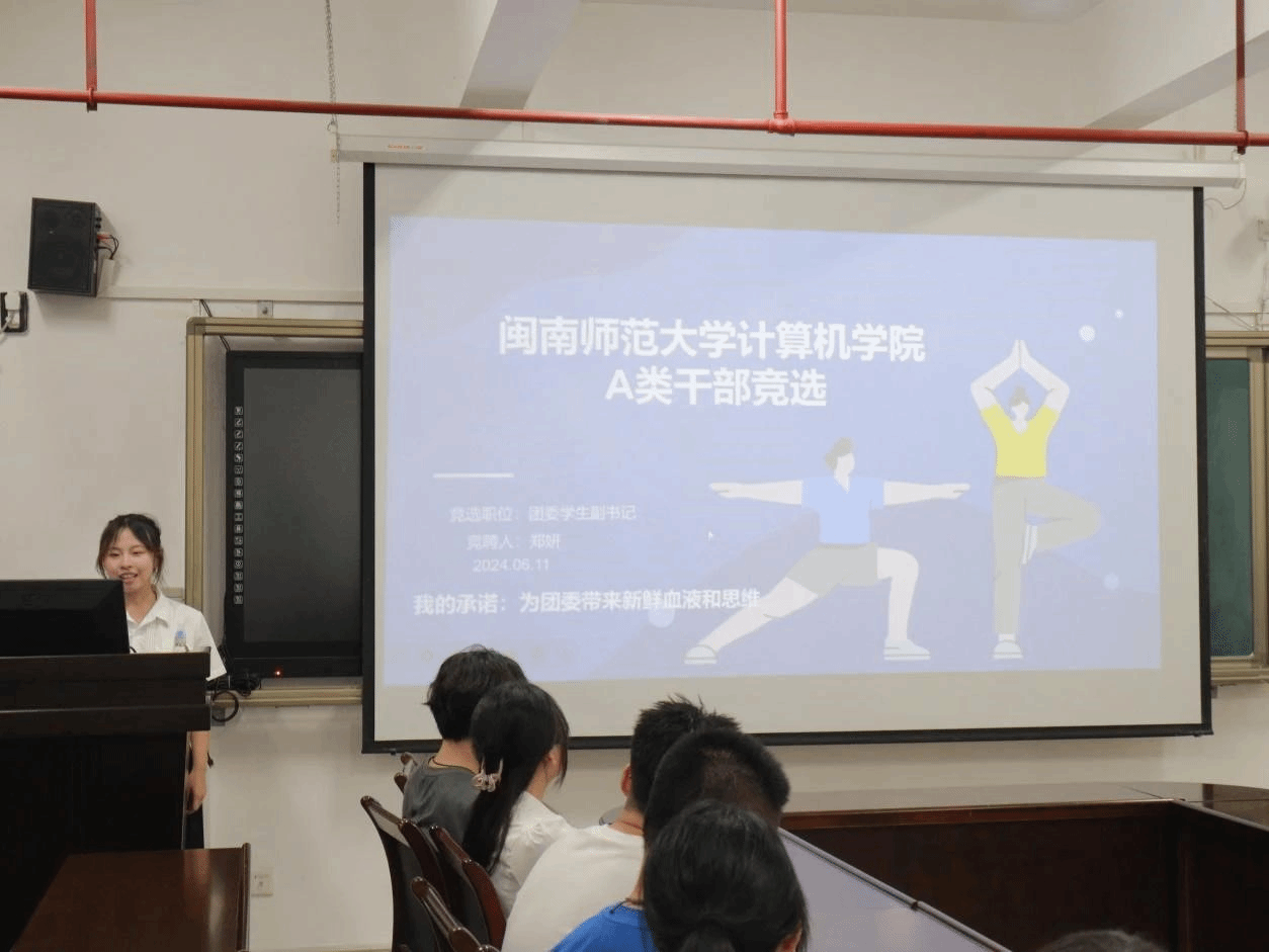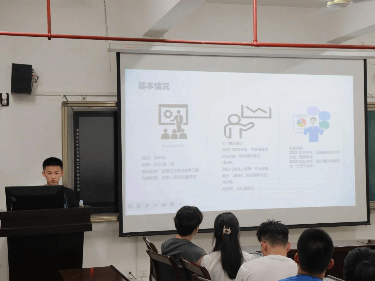 随后,在学生干部换届竞选大会上,候选人结合PPT,通过5分钟的竞职演讲,展示了自己对干部岗位的认知、未来工作规划和个人竞选优势等方面,同时以自己独特的见解和创新思维,展现出了他们在应对挑战和解决问题方面的能力和智慧。