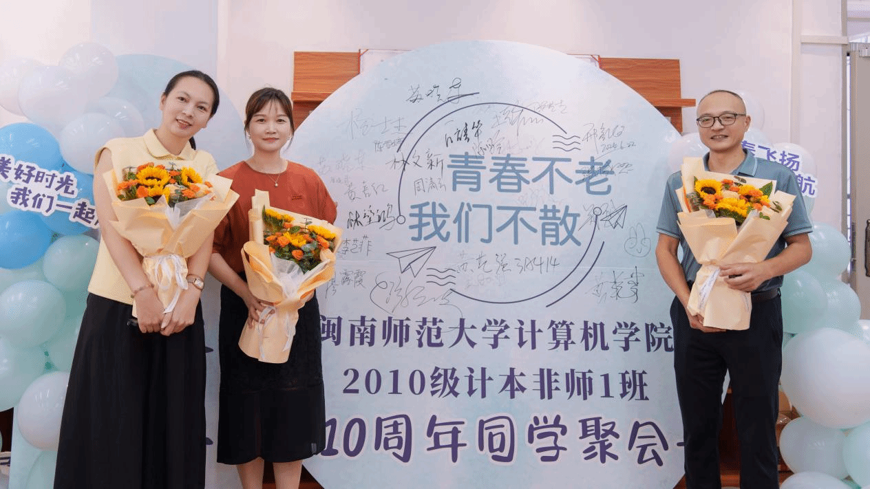 仲夏蝉鸣毕业季,十载相思聚闽师。近日,必赢国际437官网在砺志楼223举办2010级计本非师一班(计算机科学与技术)毕业十周年返校活动。院党委副书记陈小玲,必赢国际437官网原辅导员、科研处自然科学项目管理科科长张成恕,必赢国际437官网原辅导员、法学院团委书记邢舒惠等教师代表参加本次活动。