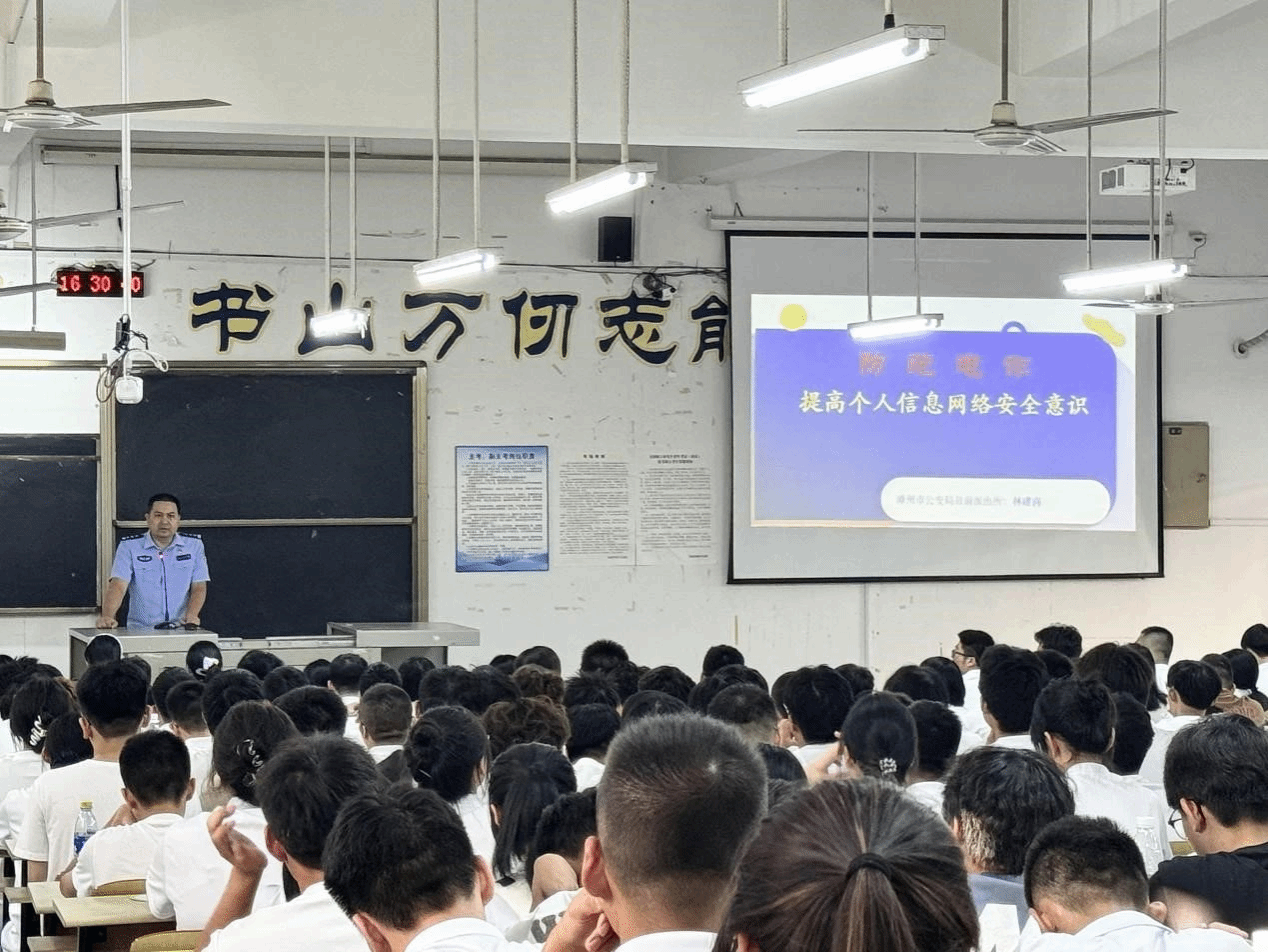 为进一步筑牢校园安全防线,提高学生网络安全、防诈骗、禁毒、反邪教的意识和防范能力,9月10日下午,必赢国际437官网在笃行楼126举办校园安全知识讲座。本次讲座邀请到漳州市公安局县前派出所指导员林建喜主讲,全体2024级本科生参加。