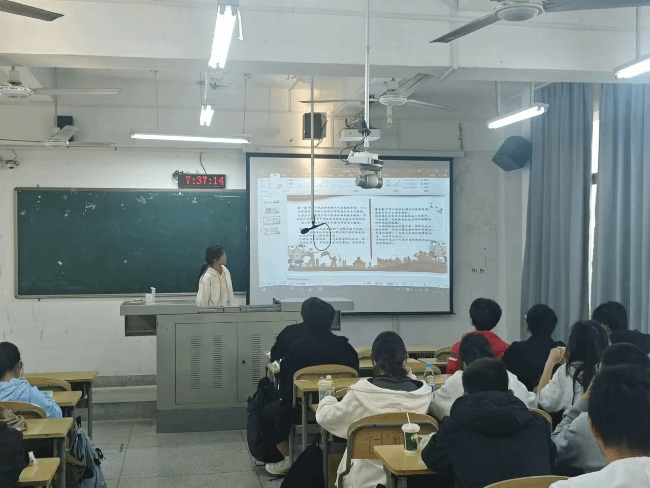 活动伊始,在团支书带领下,全体学生整齐站立,齐声诵读宪法条文,手捧宪法文本,目光专注,字句铿锵。从序言到公民的基本权利和义务,再到国家机构等章节,同学们逐句诵读,认真领会宪法的深刻内涵。同学们声音洪亮、神情专注,清脆而坚定的诵读声在校园中回荡,彰显着对宪法的尊崇与敬畏。