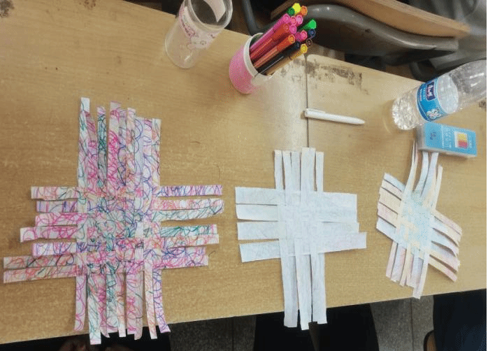 第二期培训以“情绪管理”为核心,探索情绪本质,引导学生辩证理解情绪的流动性与功能性。通过“绘心伞·筑防线”和“经纬交织”活动,学员用画笔勾勒内心焦虑,用丝线编织情绪脉络,将抽象心绪转化为具象表达。