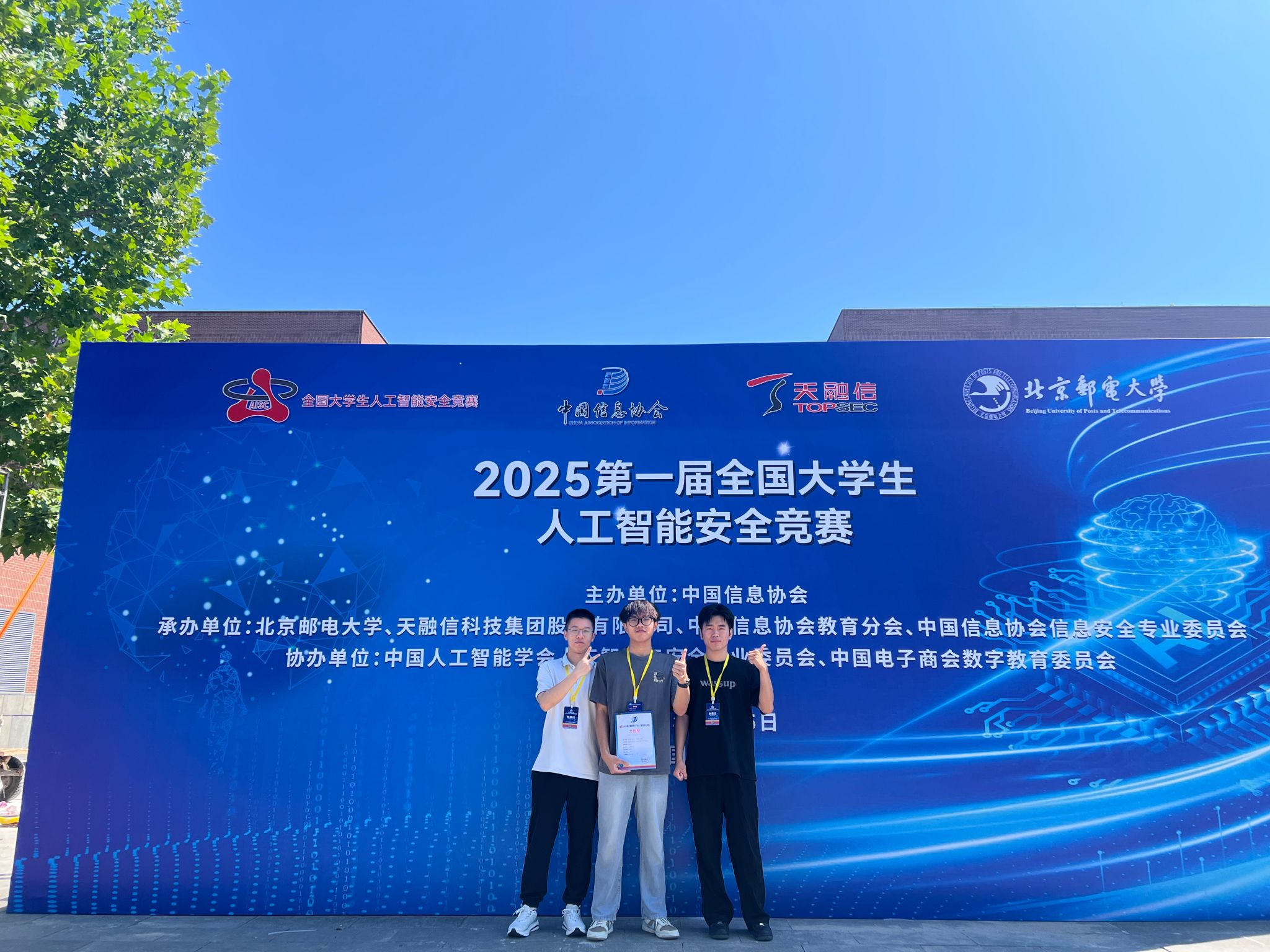 2025年8月25日,由中国信息协会主办,北京邮电大学网络空间安全学院、天融信科技集团、中国信息协会教育分会、中国信息协会信息安全专业委员会承办的2025第一届全国大学生人工智能安全竞赛决赛在北京邮电大学圆满落幕。必赢官网王育齐教授带领的参赛队伍(22级软件1班廖开富、23级软件1班郭竹行、23级软件2班陈凌宇和23级大数据班俞果),在决赛中凭借着扎实的专业知识和出色的临场发挥取得佳绩,其参赛作品《像素级双重守护:智能去痕与干扰免疫系统》荣获全国二等奖。