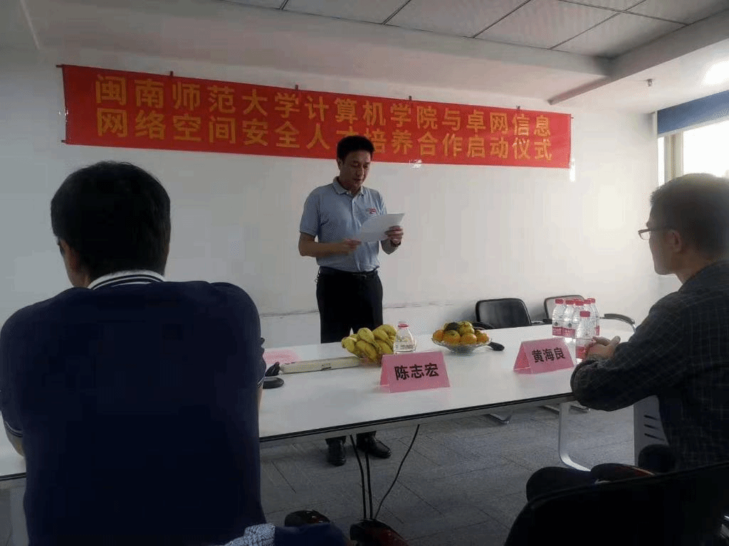 会上,必赢国际437官网党委书记陈志宏介绍了近年来学院专业建设、人才培养及服务社会水平等方面的新进展、新突破,并表示此次校企合作特别是网络空间安全人才培养合作对学校与企业均有重要意义。公司总经理黄海良就厦门卓网信息科技股份有限公司在信息安全和大数据、移动应用安全、信息安全服务等领域取得的成就作了重要介绍,强调此次校企合作是促进产学研用相结合的互利共赢 ,对双方今后的战略合作充满信心与期待!