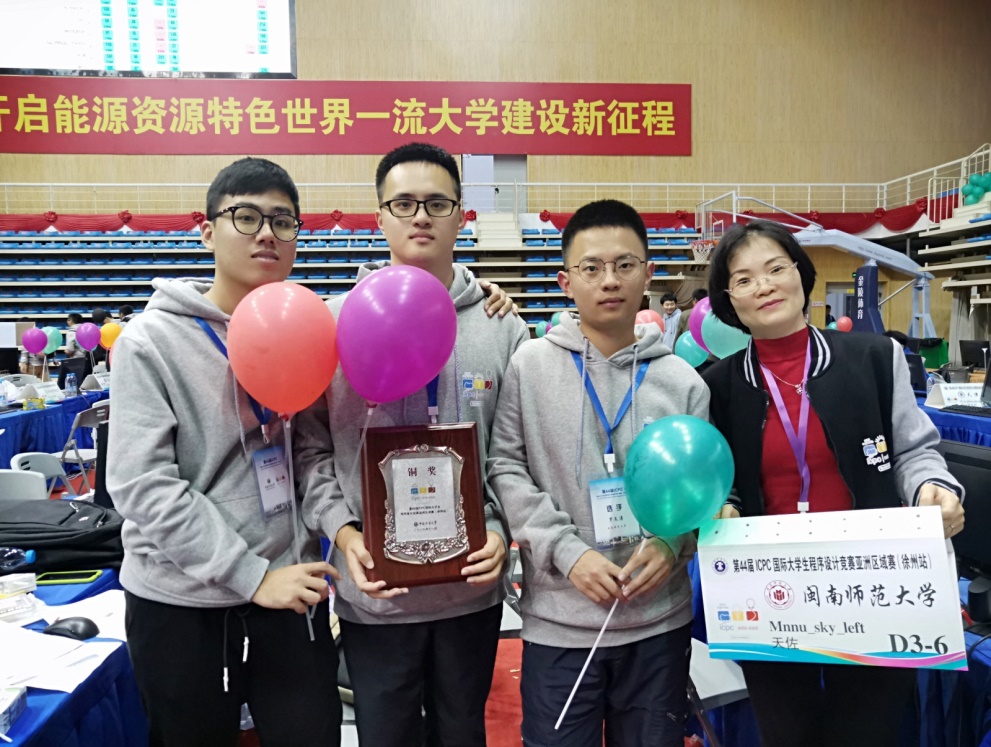 2019年11月2日至3日,闽南师大ACM代表队在必赢国际437官网童先群、何秋红等教师组成的教练团队指导下,在第44届国际大学生程序设计竞赛ACM-ICPC亚洲区域赛徐州站荣获铜奖一枚。