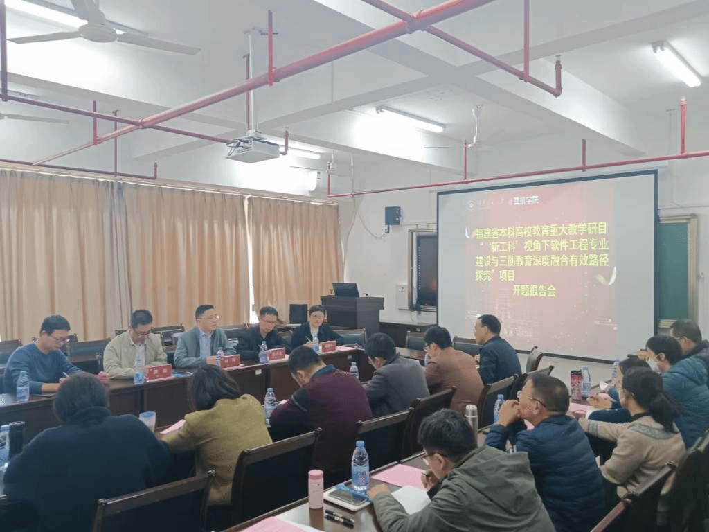 本次教学系列研讨会围绕三个专题:1)《软件工程省级一流专业建设研讨会》;2)《数据科学与大数据技术新专业建设研讨会》;3)《福建省本科高校教育重大教学研究项目“‘新工科’视角下软件工程专业建设与三创教育深度融合有效路径探究”项目开题报告会》。