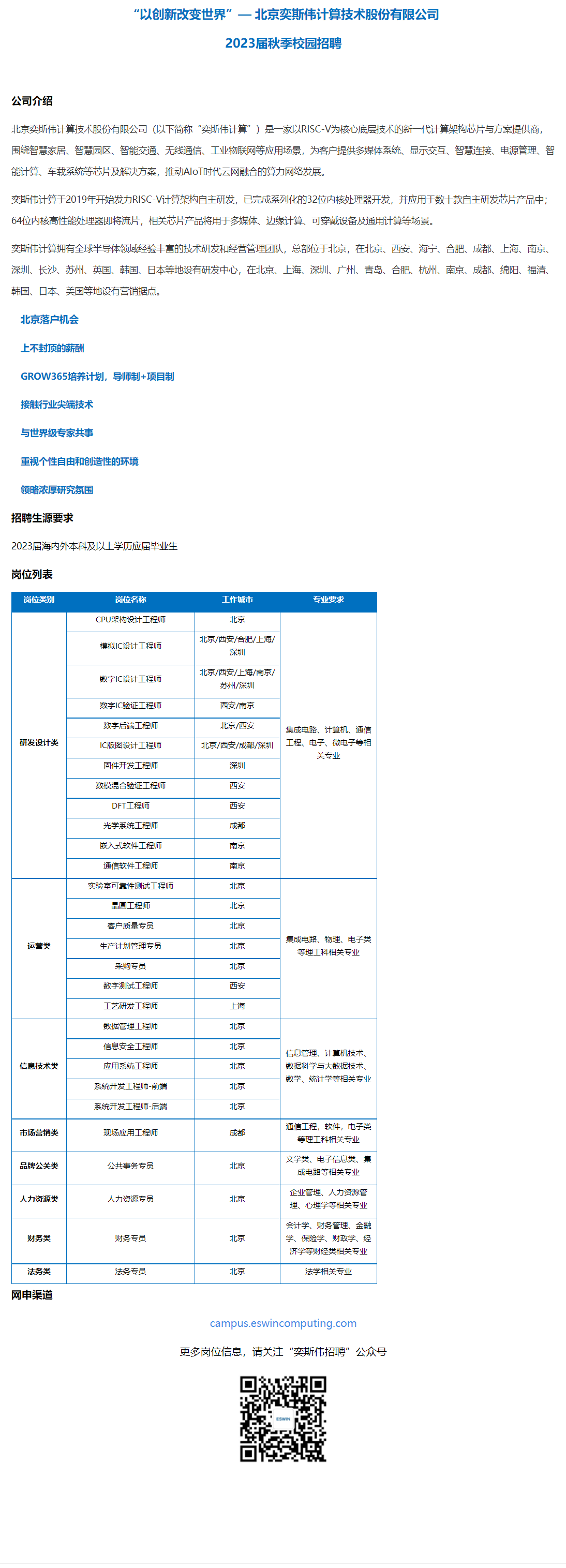 "以创新改变世界”—北京奕斯伟计算技术股份有限公司 2023届秋季校园招聘