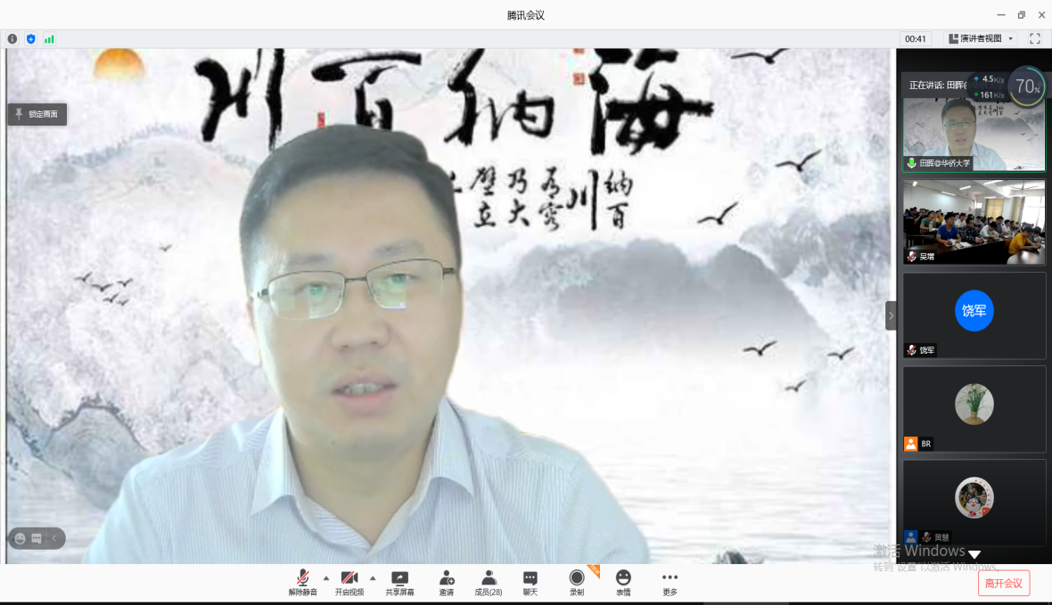 田教授的精彩的报告给师生留下深刻的印象。值得一提的是,为达到较好线上学习效果,结合实际情况,本次20级研究生采用集中场地、其余研究生和老师通过分散加入的方式进行。
