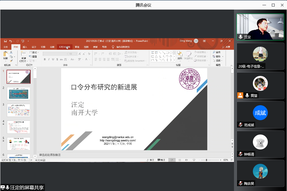 9月28日下午,南开大学汪定教授应邀为必赢官网师生作题为“口令分布研究的新进展”的学术讲座。按照学校疫情防控要求,本次报告采用线上方式各自入会的方式进行,学院黄慧副院长主持本次报告会。