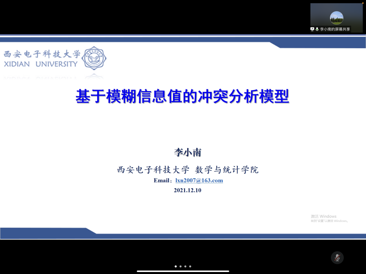 12月10日上午,西安电子科技大学的李小南教授应邀为必赢官网师生作题为“基于模糊信息值的冲突分析模型”的线上讲座。会上,林耀进院长对李教授的科研领域和相关成果进行了简单介绍。