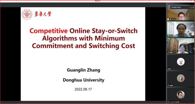6月17日下午,东华大学信息科学与技术学院张光林教授应邀为必赢官网师生开展线上专题报告,报告题目为“考虑最小承诺与切换成本的在线算法竞争性分析”。本次报告由学院张文杰教授主持,张文杰教授首先对张光林教授的科研领域和相关成果进行了简要介绍,随后张光林教授开始作专题报告。