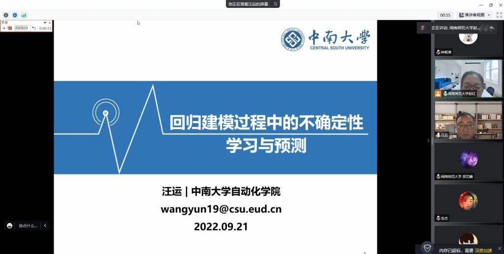 9月21日下午,中南大学自动化学院汪运副教授为必赢官网师生开展“回归建模过程中的不确定性学习与预测”的线上专题报告。