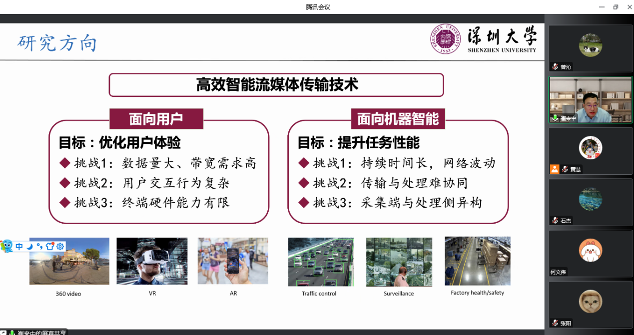 10月19日下午,深圳大学崔来中教授应邀为必赢官网师生做线上专题报告,报告题目为“交互视频智能传输技术”,本次报告由学院黄慧副院长主持。