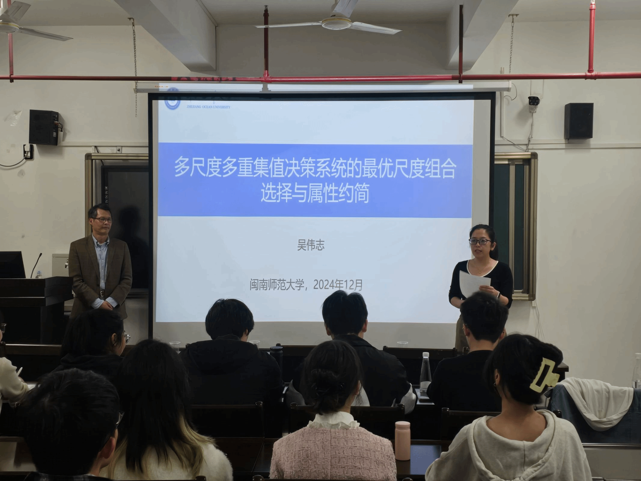 吴伟志教授的报告聚焦于“多尺度多重集值决策系统的最优尺度组合选择与属性约简”。吴教授探讨了多尺度多重集值数据的知识获取问题,内容涵盖广义多尺度多重集值决策系统中相似关系和信息粒的构造方法、最优尺度组合与熵最优尺度组合的定义及其等价性等方面。结合实例和实验结果,吴教授展示了所提算法的有效性和合理性,为多尺度数据分析领域提供了深入见解和实用工具。
