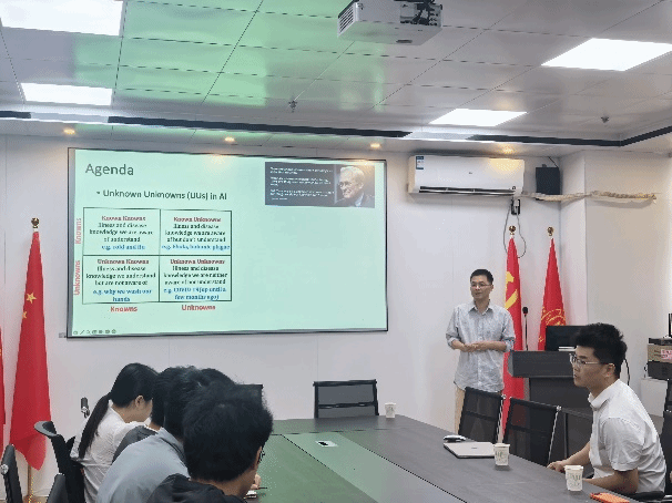 Yifeng Zeng教授汇报的题目为“Exploring Unknown Unknowns ”,Yifeng Zeng教授教授首先介绍了未知的未知问题的基本概念,阐释了其作为人工智能在开放式应用中面临的核心挑战的关键地位,以及多智能体规划如何通过协同应对这类缺乏先验知识、未被意识到的决策问题,从而推动人工智能技术的可持续发展和应用。随后,他追溯了多智能体规划在应对未知问题上的发展脉络,从早期处理已知未知问题到如今探索未知的未知问题。报告还系统地介绍了多智能体规划在未知的未知环境下的主要研究进展,并深入讨论了重新审视核心技术以解决这类问题的策略。