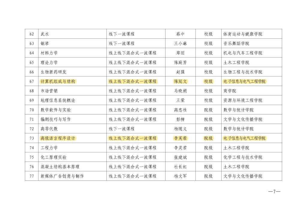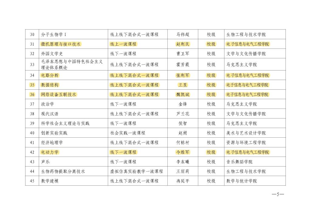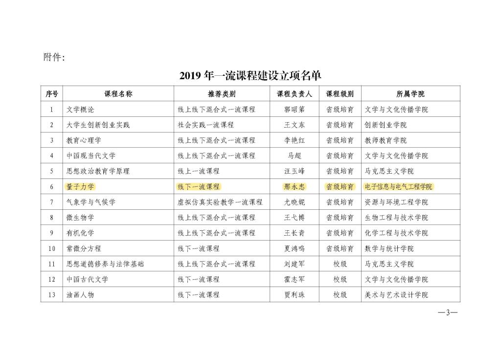 best365中国官方网站获批2019 年校级一流本科课程建设立项结果