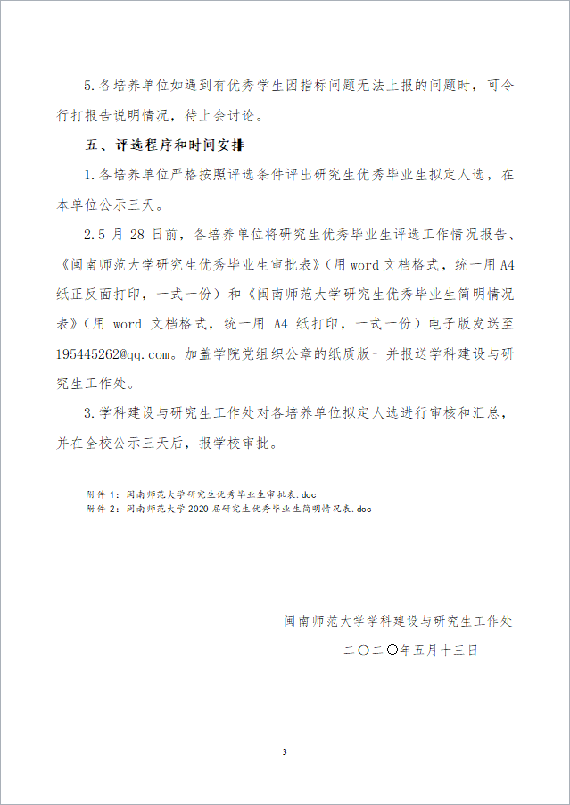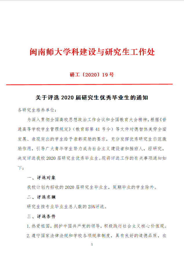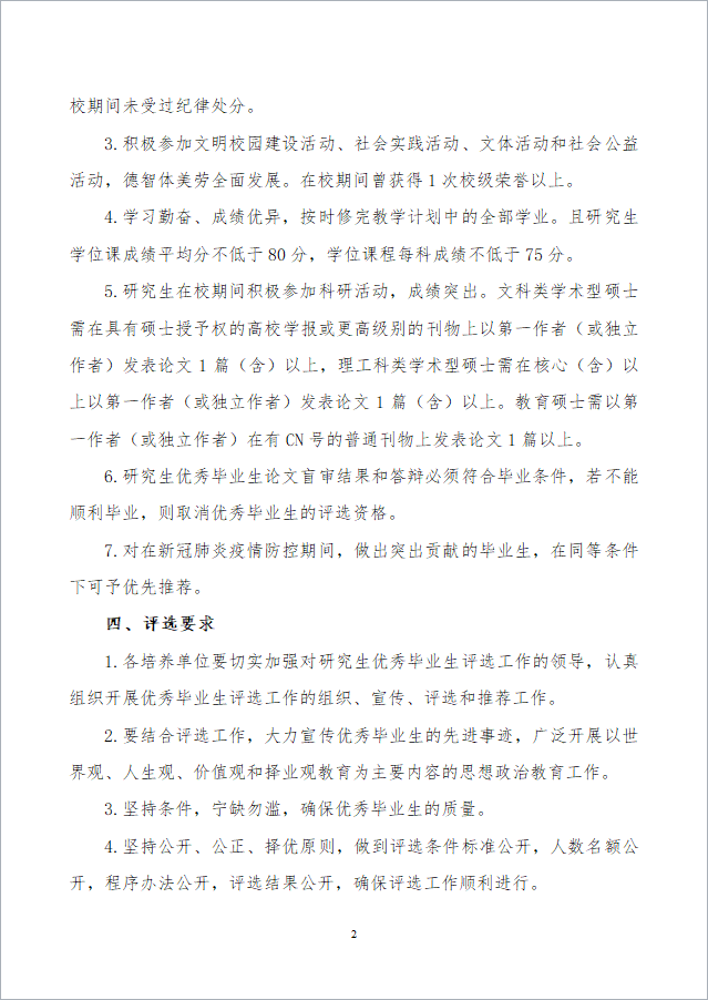 关于评选2020届研究生优秀毕业生的通知