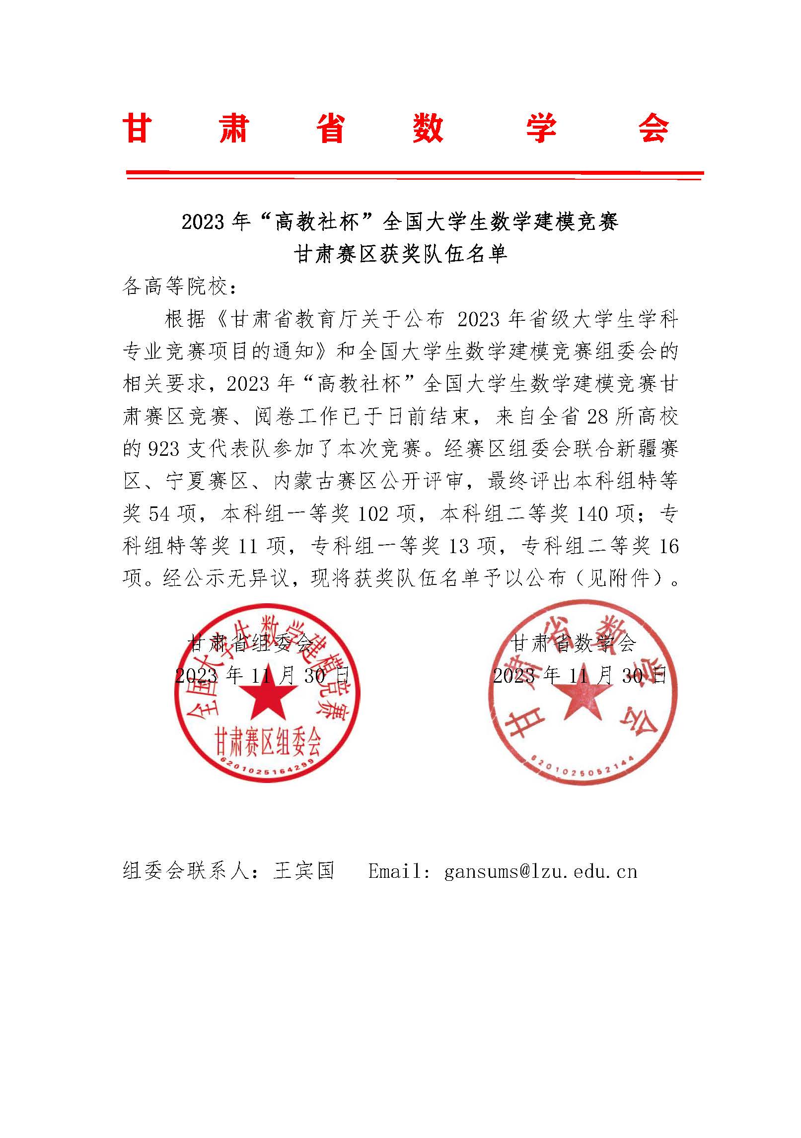 best365中国官方网站师生在2023 年“高教社杯”全国大学生数学建模竞赛获奖