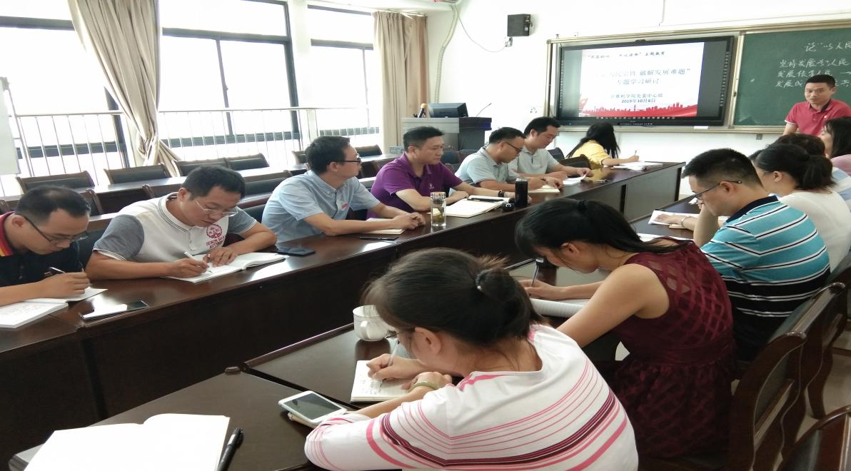 10月8日上午10:00,必赢国际437官网在科信楼11楼1106会议室开展“不忘初心、牢记使命”主题教育“牢记为民宗旨,破解发展难题”专题集中学习研讨会。学院党政领导班子成员,全体支部书记参加了集中学习研讨会。学院党委书记陈志宏主持学习会,学院党委副书记蔡滨、副院长陈志翔作重点发言,党委委员张文杰参与交流发言。