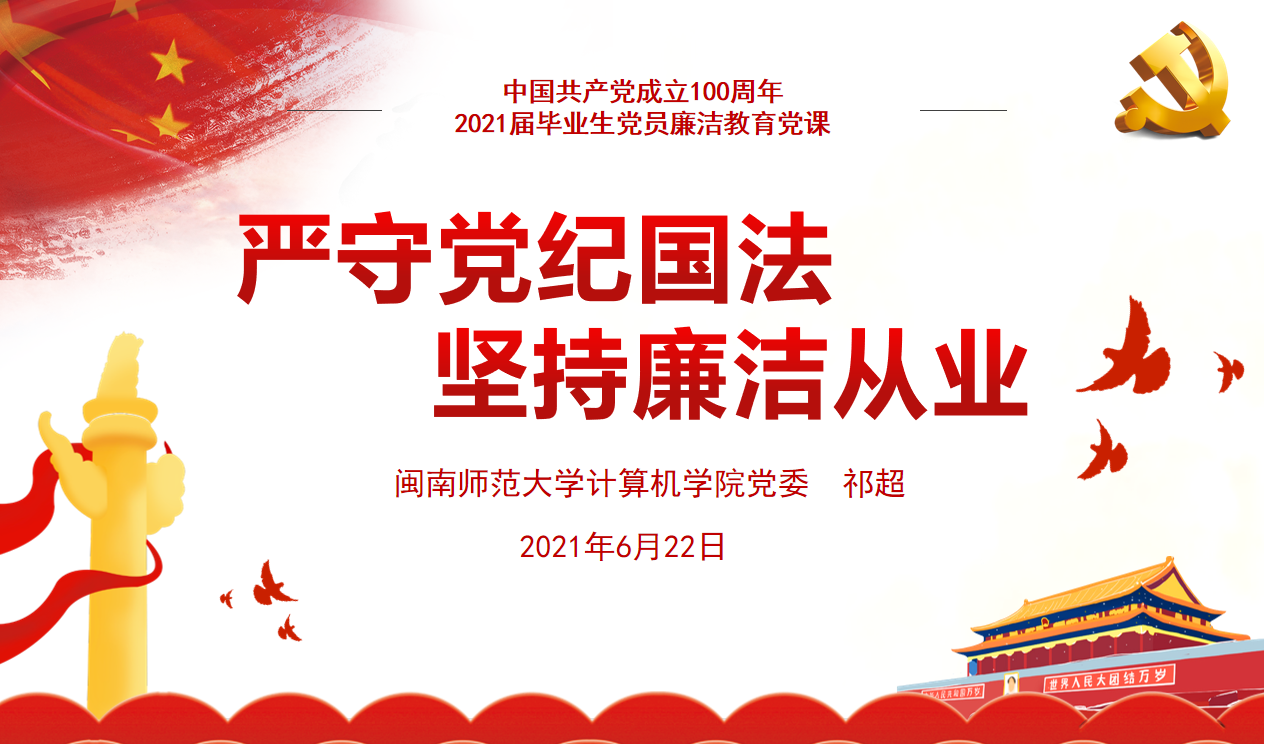 随后,祁超老师面向毕业生党员讲授主题为《严守党纪国法 坚持廉洁从业》的党课。他代表学院党委,向毕业生党员圆满完成学业表示热烈的祝贺和诚挚的祝福。他指出,同学们即将走向社会,会面对更多的鲜花和掌声,同时也将面对更大的暗礁险滩和名利诱惑,希望大家不忘党员身份,永葆廉洁之心,走好职场之路,展现先锋形象。一是学规懂法,心存敬畏。牢固树立法纪意识,对职场中什么能做、什么不能做要做到心中有数,对纪法红线和底线心中有数;二是抵制诱惑,坚守底线。始终保持定力,守护纯真和善良,廉洁自爱,不随波逐流,做到踏实做人、干净做事。三是陶冶情操,拼搏奋斗。坚持自律自省,养成健康的生活习惯,不挥霍时间、不透支身体,努力让青春在奋斗中迸发绚丽风采。