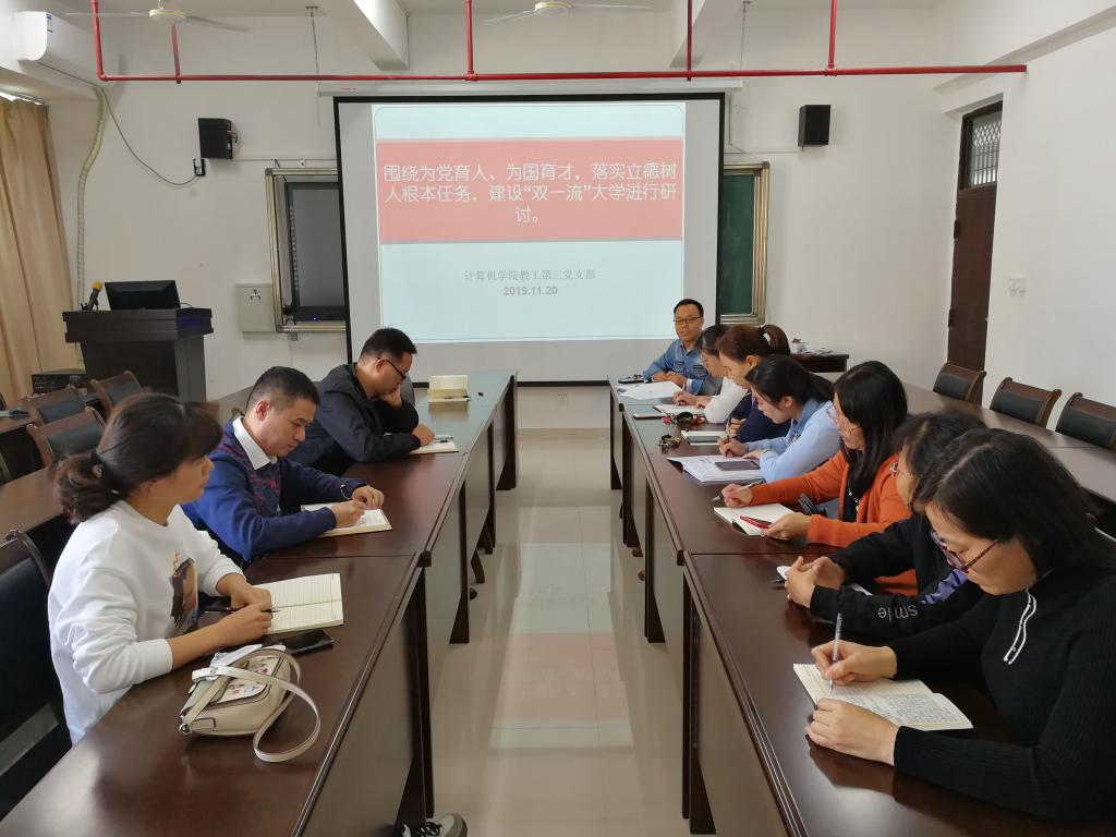 必赢国际437官网教工第一党支部共有专任教师党员15名,其中:正式党员14名,预备党员1名。支部拥有完整的支委会机制,设有书记、副书记、组织委员、宣传委员和纪检委员岗位。支部通过不断加强教师的思想政治教育,使支部党员成为讲政治、讲规矩、讲道德、讲奉献的先锋模范,成为有理想信念、有道德情操、有扎实学识、有仁爱之心的优秀教师。支部成员在一流课程建设、一流专业申报、课程思政竞赛、专业人才培养方案修订,以及教育部工程认证申请、ACM创新团队和信息安全创新团队竞赛等教学科研工作中取得显著成绩: