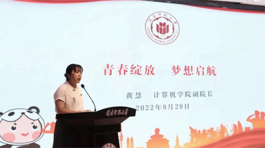 黄慧代表学院全体师生对2022级新同学表示热烈欢迎和诚挚问候。她指出无论是从高中到大学,还是从本科到研究生,同学们都面临着重要的人生转折。未来大家将与信息技术领域紧密相连,并深刻体会大数据、云计算、虚拟现实等领域的瞬息万变。我们要顺势而为,抓住机遇,让自己的人生大放异彩!她希望同学们做到:一、修身以正、正心以诚。能关注自身的精神成长,实现积极的人格、坚定的信念、至善的德行,成为有大爱、大德、大情怀的人。二、学业求精、学问求真。学习上不固守一种思维模式,不再局限于记住和理解,让自己和老师同学成为相互激发、相互学习的同行者,让知识与灵感尽情碰撞,从而产生新的创意、新的思路。三、内化于心、外化于行。立足现实,放眼未来,珍惜时间,不断充实自我,才更好地将个人的知识技能与国家的发展紧密结合。四、志存高远、胸怀家国。希望同学都能把自己的梦想与国家的发展紧密结合在一起,热爱自己的专业,以满腔的热情,高度的信心和责任感,在这座美丽的校园里汲取养分、踏实学习、收获知识,快乐成长!