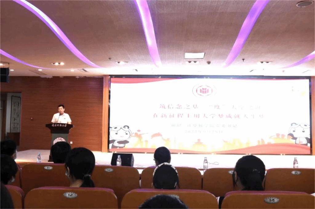 祁超结合当前的社会背景、学校发展和学生的专业实际,深入分析了同学们目前面对的机遇和挑战。对同学们如何在新征程上把准航向,更好度过大学生涯、规划职业生涯,分享了建议,提出了要求。