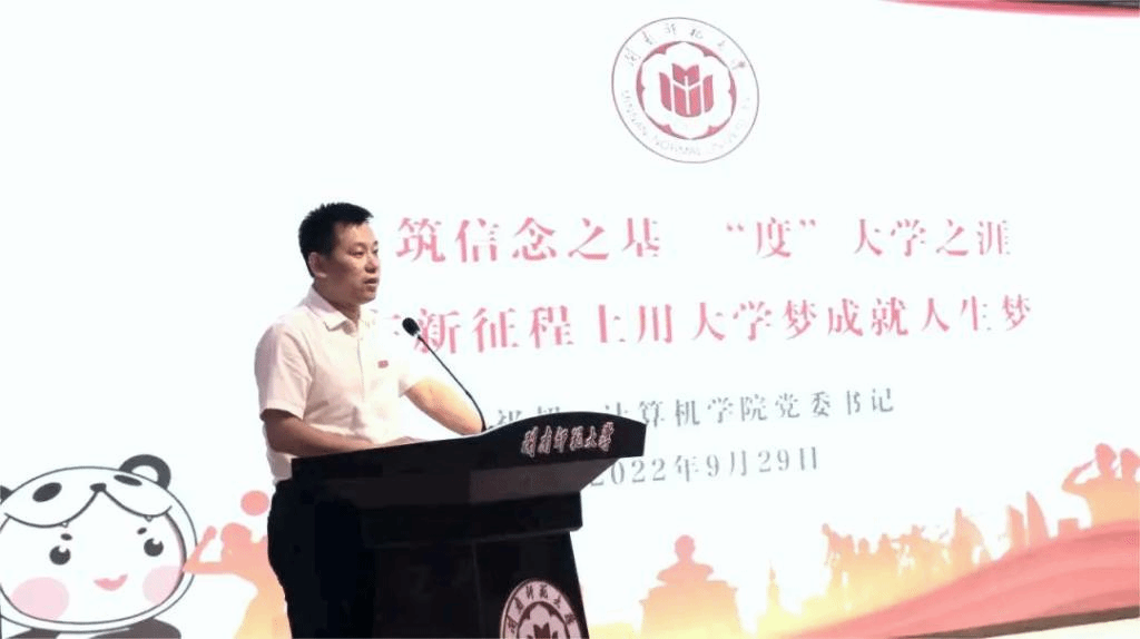 仪式的最后,必赢国际437官网党委书记祁超为2022级新生们讲授思政课:筑信念之基 “度”大学之涯——在新征程上用大学梦成就人生梦。