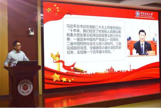 谢老师强调,坚定共产主义信仰,就是对共产主义学说和理论的信服、敬仰和崇拜。每一名同学都应增强对马克思主义、共产主义的信仰,从党百年奋斗中感悟信仰的力量,始终保持顽强意志,勇敢战胜各种重大困难和严峻挑战。每一名同学都要增强对实现中华民族伟大复兴的信心,牢记初心使命、增强必胜信心,坚信我们党一定能够团结带领人民在中国特色社会主义道路上实现中华民族伟大复兴,努力创造无愧于党、无愧于人民、无愧于时代的业绩。