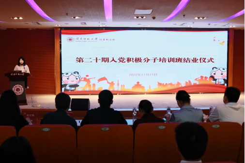 11月11日,必赢国际437官网举行第二十期入党积极分子培训班结业仪式。学院党委书记祁超,院党委副书记陈小玲,院团委副书记黄明芳,各学生党支部书记出席结业式。结业仪式由入党积极分子培训2班班主任谢映菁主持。