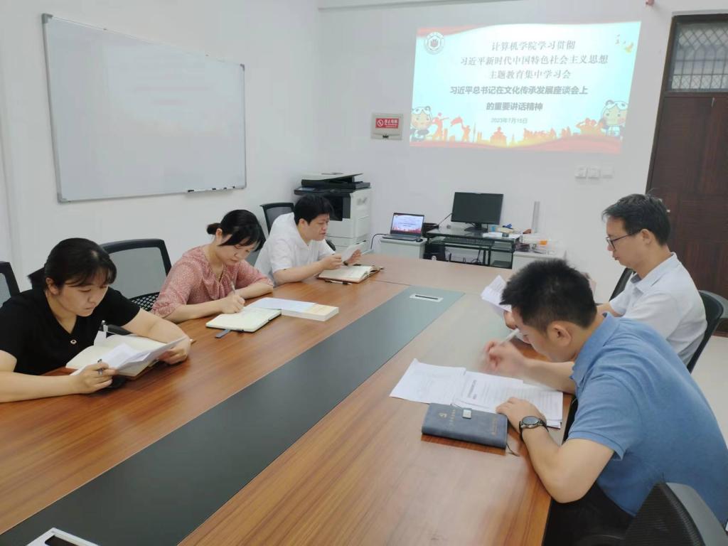 周豫苹表示,学习习近平总书记在文化传承发展座谈会上的重要讲话精神就是要站在中华民族伟大复兴和中华文明永续传承的战略高度去学习贯彻。要将弘扬中华优秀传统文化作为立德树人的重要内容,推动中华优秀传统文化融入课程思政建设;充分挖掘计算机专业课程中沉淀的特色中华优秀传统文化教育资源,打造学院新工科人才培养特色文化品牌;要围绕服务国家战略需求,厚植学生家国情怀,努力培养一批具有高度文化自信和家国情怀的高素质复合型人才。