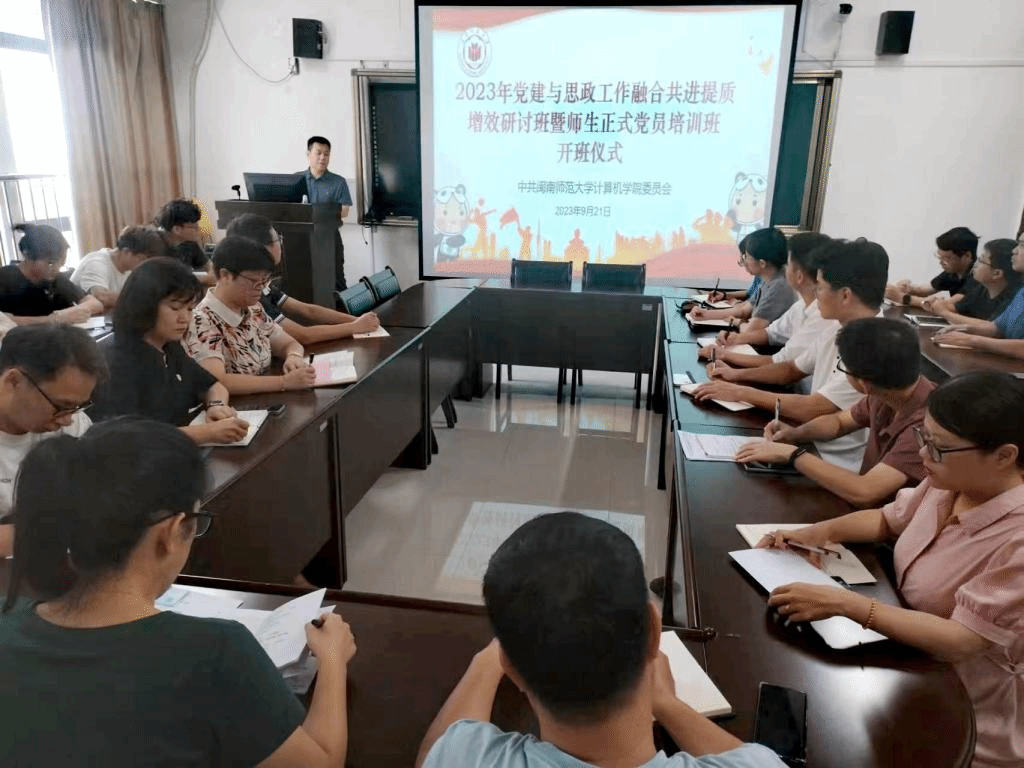 9月21日下午,必赢国际437官网党委在科技楼北1106会议室举办“2023年党建与思政工作融合共进提质增效研讨班暨师生正式党员培训班”开班仪式,学院党委书记祁超主持。学院领导班子成员、全体党支部书记、教工党支部支委委员、学生党员党员代表参加。
