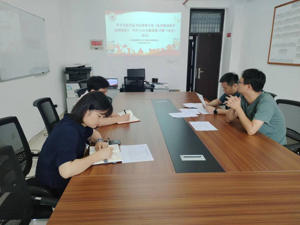 9月21日下午,学院党委召开理论学习中心组学习会,围绕习近平总书记给国防科技大学建校70周年贺信精神、习近平总书记视察哈尔滨工程大学时的重要讲话精神、习近平给东北大学全体师生的回信、习近平总书记重要文章《扎实推动教育强国建设》、习近平复信南非德班理工大学孔子学院师生等多个主题进行学习。会议还传达学习全省组织工作会议精神、关于当前我省意识形态领域形势的通报及省委十一届四次全会精神。会议由学院党委书记祁超主持。