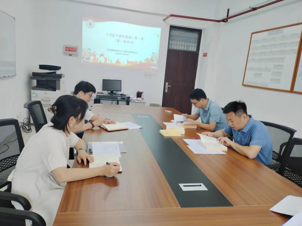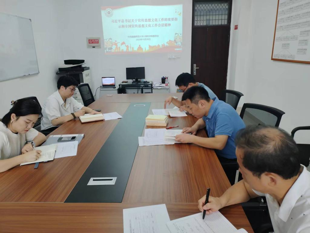 会上,学院党委书记祁超领学了《中国式现代化面对面》“文脉国脉紧相连——如何理解全面建设社会主义现代化国家必须推进文化自信自强”、《习近平著作选读》第一卷“要有高度的文化自信”、《习近平著作选读》第二卷“培养德智体美劳全面发展的社会主义建设者和接班人”、《习近平新时代中国特色社会主义思想学习纲要(2023年版)》“建设社会主义文化强国——关于新时代中国特色社会主义文化建设”等章节内容。祁超强调,中国正全面建设社会主义现代化国家,需要我们更好担负起新的文化使命,积极引导师生坚定文化自信、秉持开放包容、坚持守正创新,在新起点上为推动文化繁荣、建设文化强国、建设中华民族现代文明贡献力量;需要我们更加坚定文化自信,积极引导师生加强对中华民族历史的认知和运用,扎根土地培养人才,在世界文化激荡中站稳脚跟;需要我们在坚定理想信念、厚植爱国主义情怀、加强品德修养、增长知识见识、培养奋斗精神、增强综合素质上下功夫,健全全员育人、全过程育人、全方位育人的体制机制,不断培养一代又一代社会主义建设者和接班人;需要我们做到知行合一,大力弘扬理论联系实际的优良学风,更加自觉用习近平新时代中国特色社会主义思想指导解决实际问题,切实把学习成效转化为做好本职工作、推动事业发展的生动实践。