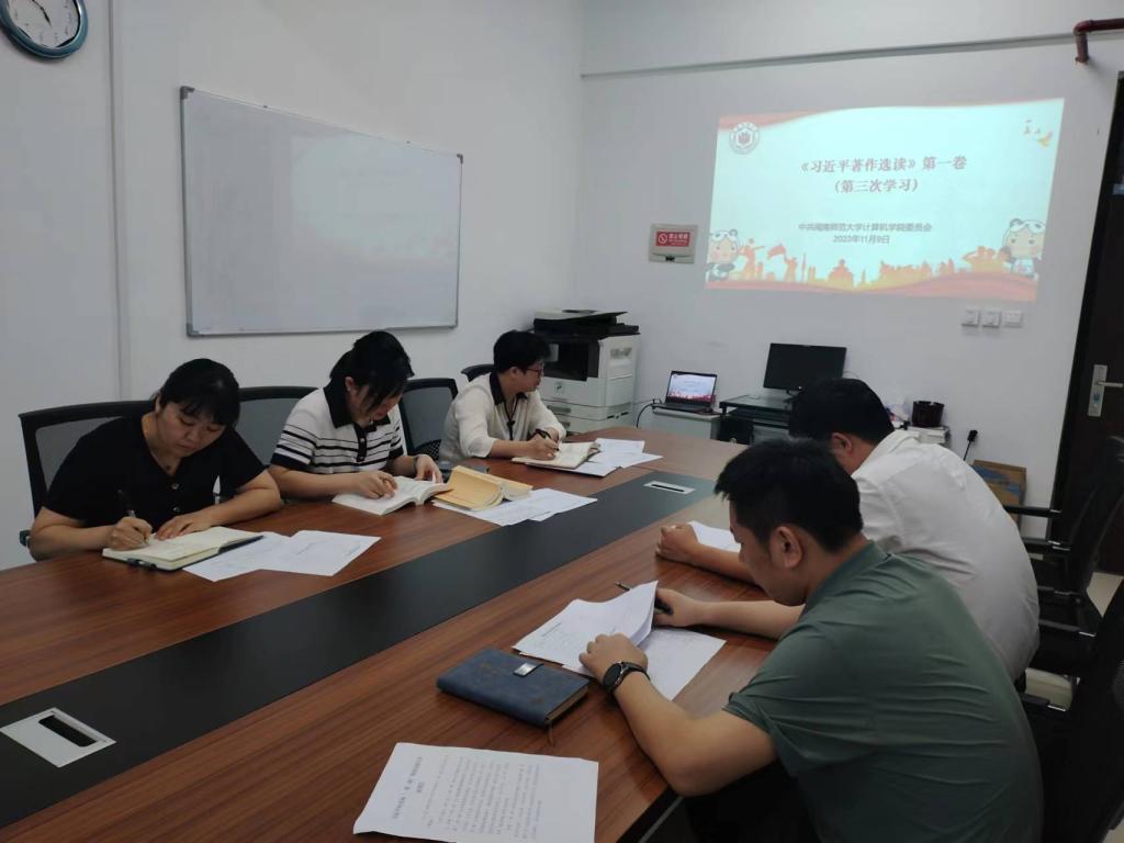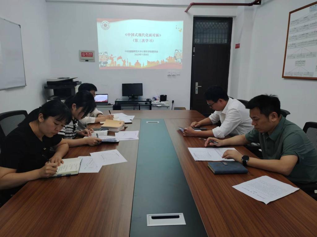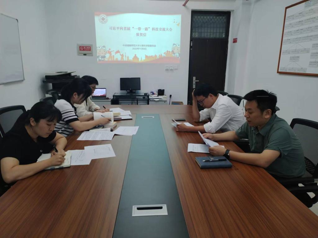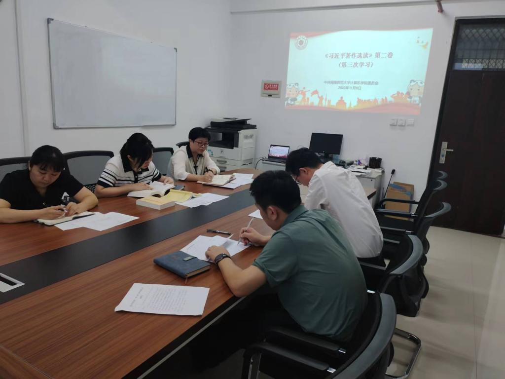 11月9日上午,必赢国际437官网党委理论学习中心组学习会在科技信息楼北1109会议室举行。全体学院党委班子成员参加会议,学院党委书记祁超、副书记陈小玲分别领学“习近平向首届‘一带一路’科技交流大会致贺信”和“《中国式现代化面对面》、《习近平著作选读》第一卷、《习近平著作选读》第二卷、《习近平新时代中国特色社会主义思想学习纲要(2023年版)》、习近平同中华全国总工会新一届领导班子成员集体谈话时发表的重要讲话等专题,并作重点发言。学习会由祁超主持。