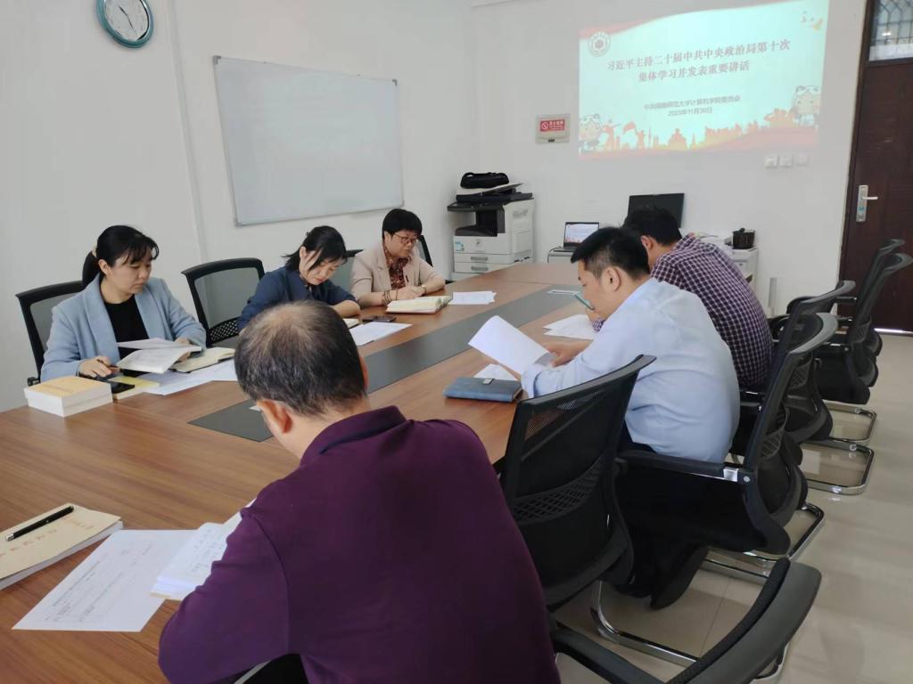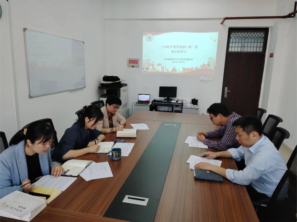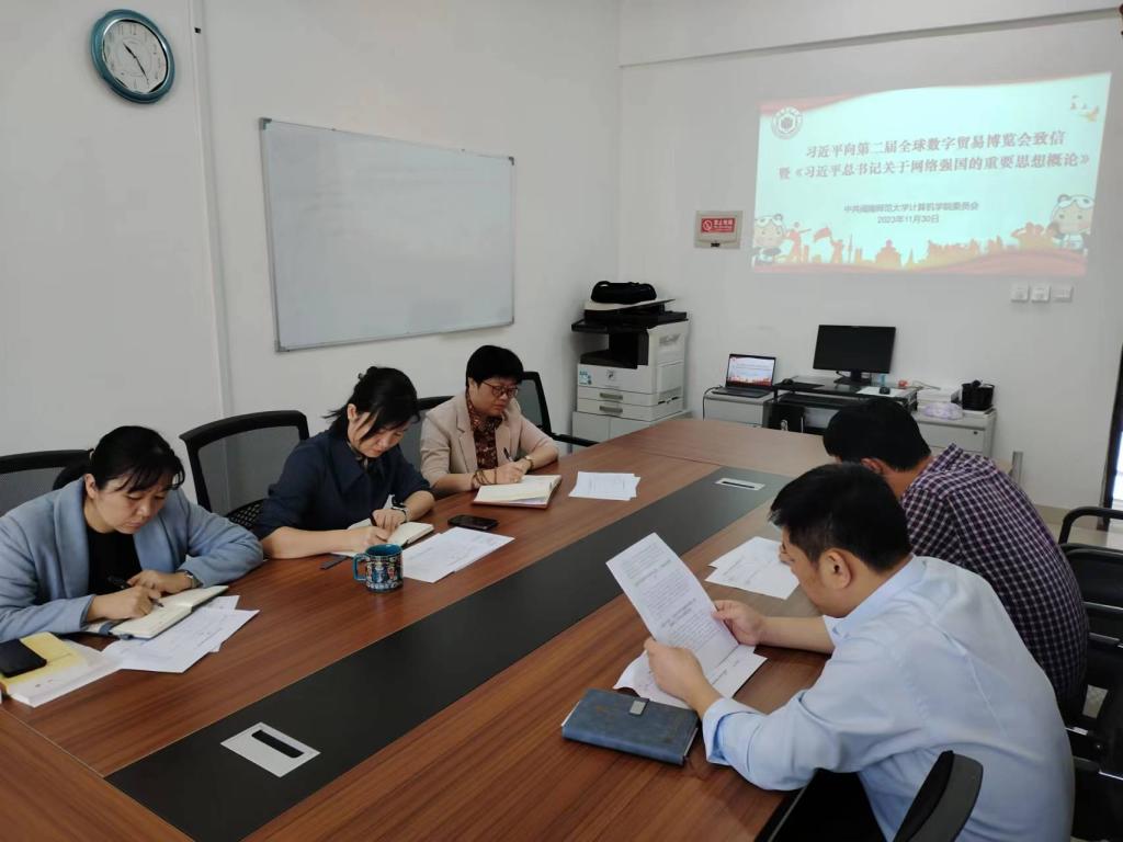 11月30日上午,必赢国际437官网党委理论学习中心组学习会在科技信息楼北1109会议室举行。全体学院党委班子成员参加会议,学院党委书记祁超、副院长黄慧分别领学“习近平总书记在美国友好团体联合欢迎宴会上的演讲精神、习近平向第二届全球数字贸易博览会致贺信暨《习近平总书记关于网络强国的重要思想概论》、习近平向世界中国学大会·上海论坛致贺信、习近平主持二十届中共中央政治局第十次集体学习发布的重要讲话”和“《中国式现代化面对面》、《习近平著作选读》第一卷、《习近平著作选读》第二卷、《习近平新时代中国特色社会主义思想学习纲要(2023年版)》”等专题,并作重点发言。学习会由祁超主持。