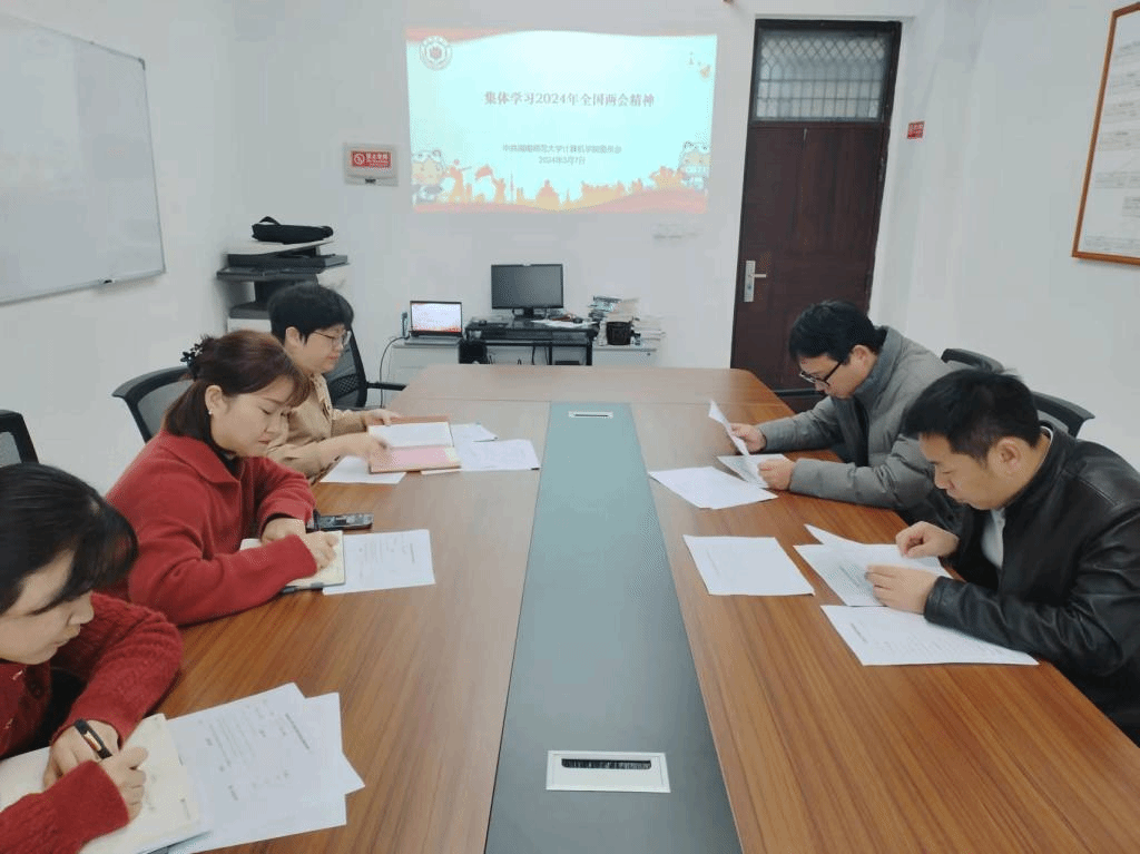 3月7日上午,必赢国际437官网党委理论学习中心组学习会在科技信息楼北1109会议室举行。全体学院党委班子成员参加会议,学院党委书记祁超领学“2024年全国两会精神”等专题,并作重点发言。学习会由祁超主持。