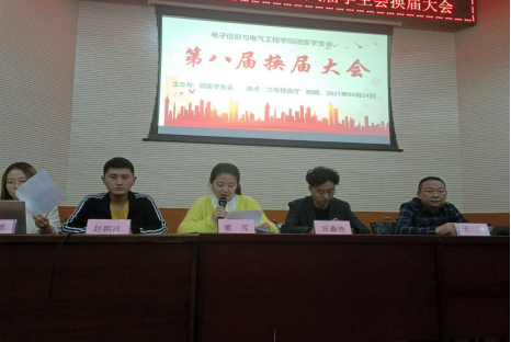 首先,辅导员汪鑫浩宣布了第八届团委学生会名单。随后团委学生会主席团新成员发表就职感言,对未来工作做出表态、展望。最后,王岱副书记发表了总结性讲话,他鼓励同学们要有“服务同学,完善自己”的工作态度,做到学习、工作两不误。