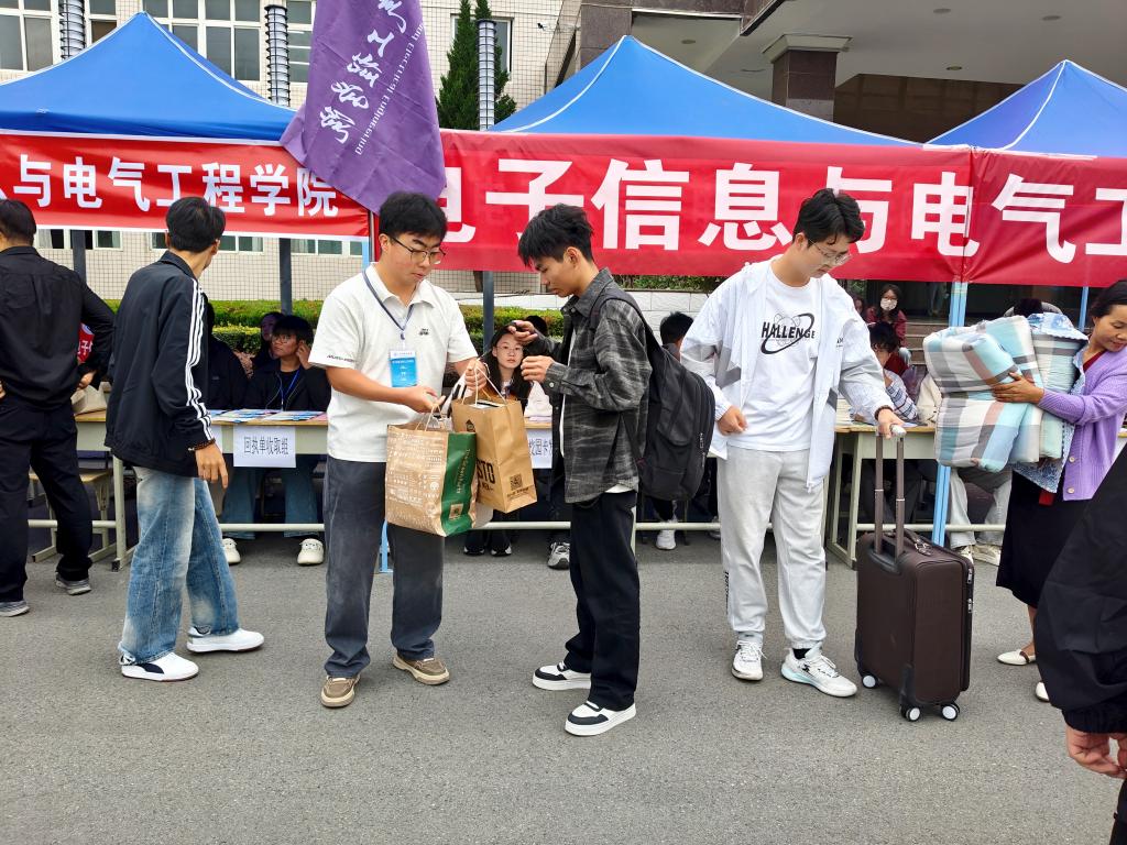 清晨伊始,志愿者们早已各就各位。校门口,他们高举着醒目的院牌,以灿烂的笑容迎接每一位新生与家长;接待点处,他们耐心解答、细致引导;校园路上,他们主动接过沉甸甸的行李,化身“导航员”和“搬运工”,一路欢声笑语,将新生们精准送达报到点和宿舍园区。从“一下车”到“进寝室”,无缝衔接的“一站式”贴心服务,彻底消除了新同学们的陌生与忐忑,让他们第一时间感受到了“电院大家庭”的温暖与关怀。